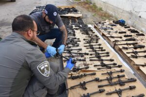 השוטרים הוציאו את החביות מעומק האדמה ובתוכן מאות פריטי אמצעי לחימה מסוגים שונים, בהם: